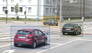 Automotive, Verkehr & LogistikDie moderne KFZ-Umfelderkennung und -Innenraumüberwachung mit multimodaler Sensorik ermöglicht vielfältige Anwendungen, die auf der automatischen Auswertung und Verknüpfung dieser Sensordaten und -bilder basieren. Die Herausforderung liegt dabei in der Entwicklung intelligenter Analysesysteme, die zuverlässig und in Echtzeit eine Semantik aus den Messdaten konstruieren können. Ähnlich verhält es sich auch mit Systemen zur Verkehrsüberwachung und zur Roboter- und Agentensteuerung in autonomen Logistiksystemen. Daneben müssen neben der eigentlichen Bild- und Datenanalyse widrige, reale Außenbedingungen wie schlechte Witterung, Tag-Nacht-Wechsel, Licht und Schatten, multiple Verdeckungen, etc. kompensiert werden. Genau auf solche Anwendungen sind wir spezialisiert und unterstützen Sie in diesem Bereich gerne mit modernsten Lösungen im Rahmen unserer vielfältigen Erfahrungen in diesem Bereich. Wir entwickeln für Sie u. a. in den Bereichen: